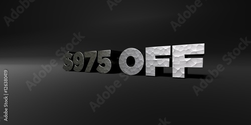 $975 OFF - hammered metal finish text on black studio - 3D rendered royalty free stock photo. This image can be used for an online website banner ad or a print postcard.