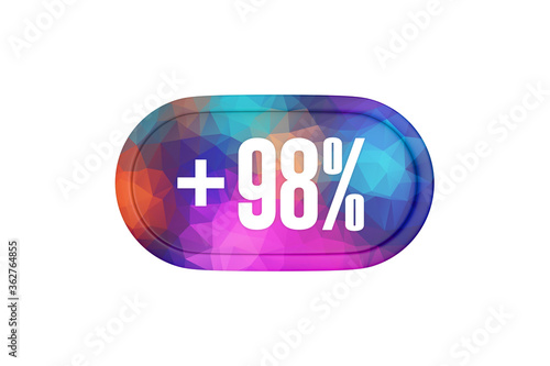 98 Percent increase 3d sign in multicolor isolated on white background, 3d illustration.