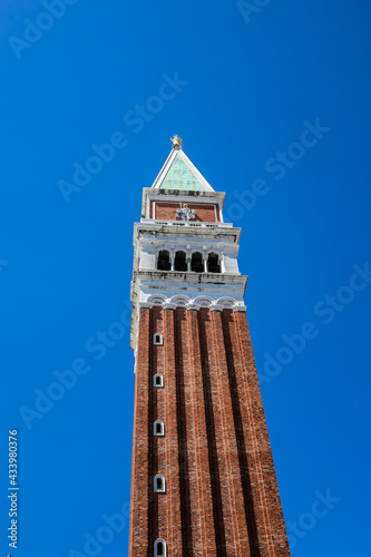 98.6 meters St Mark's Campanile (Campanile di San Marco, ninth century) - famous bell tower of St Mark's Basilica. Piazza San Marco, Venice, Italy.