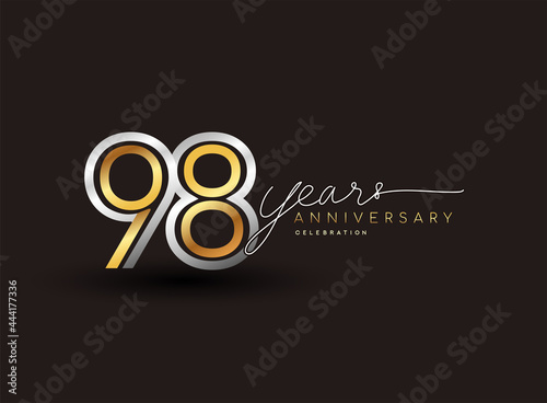 98th years anniversary logotype with multiple line silver and golden color isolated on black background for celebration event.
