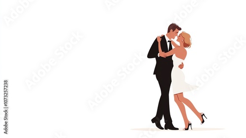 a 2D cartoon illustration of a couple dancing at a wedding reception, romantic and cheerful, white background--ar 16:9