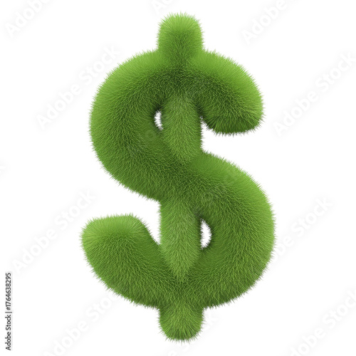 A 3D Furry Green Dollar Sign, Cut Out, Clipping Path, Isolated on a Transparent PNG Background.