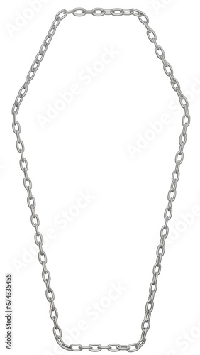 A 3D illustration depicting metal chains forming a coffin shape, isolated on transparent background, PNG format.