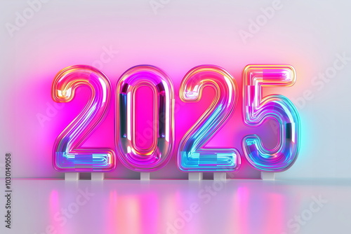 A 3D number design in a neon sign style representing the year 2025. Gorgeous neon lights in a shining pink tone. New Year, End of Year, Event, Festival, Anniversary, Party, Future, Beginning, start.