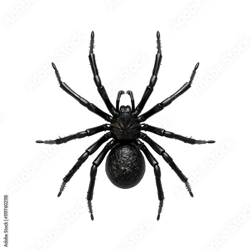 A 3D render of a black spider with eight legs and a round abdomen on a transparent background Halloween decoration arachnid insect creepy crawly eight legged creature spider illustration 3D model