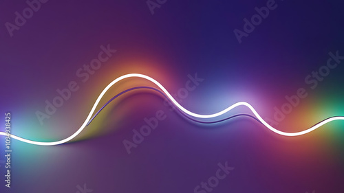 A 3D render of a simple wallpaper with an abstract colorful background illuminated with colorful neon lights. There is a glowing curvy line in the middle of the background.