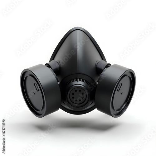 A 3D render of a sleek modern black respirator mask featuring dual side filters.