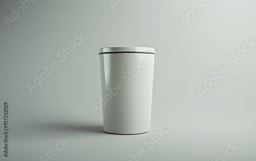 A 3D render of a white, modern waste bin with a simple design, placed on an isolated, neutral background.