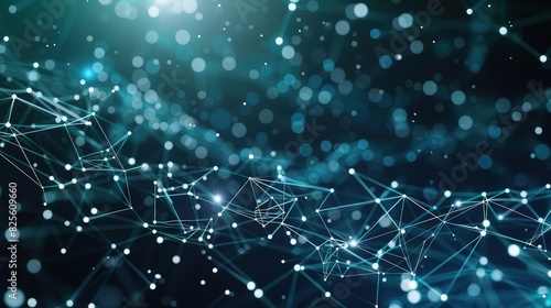 A 3D rendered image showing a sprawling network of digital connections and data points, floating in a virtual space, representing a neural network of AI technology.