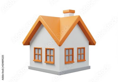 A 3D rendered small house with a white body and an orange gabled roof isolated on white background