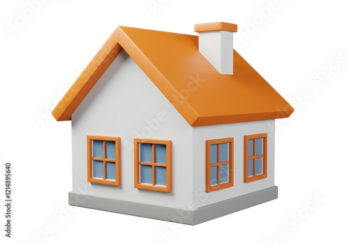 A 3D rendered small house with a white body and an orange gabled roof isolated on white background