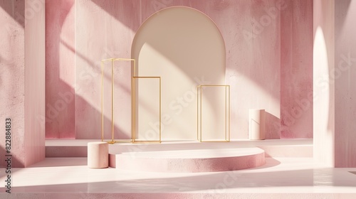 A 3D renderings for product displays composition featuring a golden ratio in minimalism of pink colors