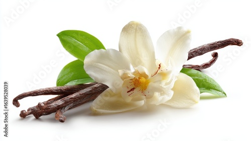 A 4K photo of fresh aroma orchid vanilla isolated on white background.