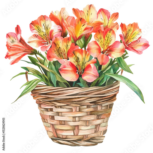 A Alstroemeria Flower Basket, watercolor vector, high quality, isolated on a white background.