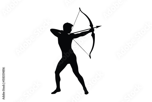 A archer, silhouette, bow and arrow, striking pose, monochrome, minimalist, digital art