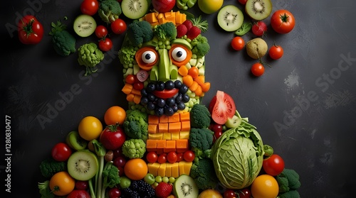A art crafted from vegetables and fruit, embodying a healthy food diet and lifestyle, adopting vegan eating habits. generative.ai