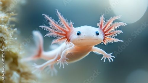 A baby axolotl swimming