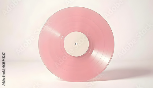 A baby pink vinyl record with a minimal center label, soft shine, and subtle shadow, isolated on a pure white background, perfect for music design, retro themes, and modern minimalist visuals