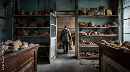 A bakery closed with broken windows and dusty shelves, symbolizing failure of small business.