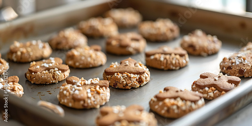 A Baking Tray Filled with Freshly Baked Gingerbread Cookies Topped with Coarse Sugar, Arranged in Neat Rows.