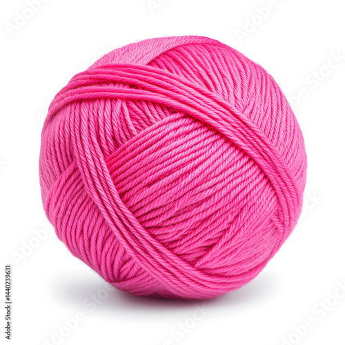 A ball of pink yarn isolated on white background. Knitting and crafting.