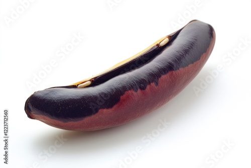 A banana with a brown spot on it. The banana is sliced in half and the brown spot is visible