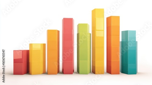 A bar chart clipart, analytics element, geometric 3D illustration, vibrant primary colors, isolated on white background.