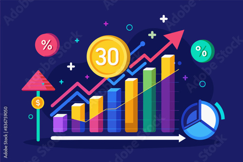 a bar chart with percentages and percentages, Investment in cryptocurrency yields a 30% return