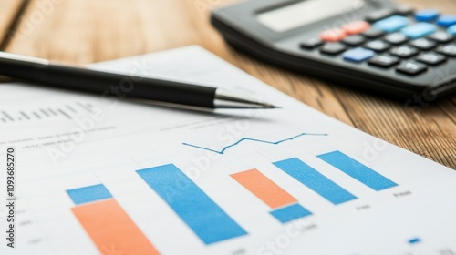 A Bar Graph and a Line Graph on a White Sheet of Paper with a Pen and Calculator
