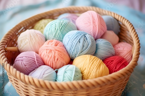 a basket filled with different colored balls of yarn Generative AI