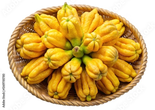 A Basket of Freshly Harvested Vibrant Yellow Buddha's Hand Citrons Ready for Use