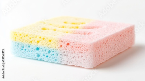 A bath sponge in pastel colors, isolated on a white background