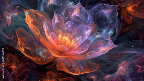 A Beautiful and Vibrant Abstract Flower Displaying a Rich Array of Cosmic Colors and Hues