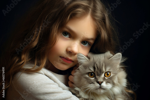 A beautiful baby girl with a little cute kitten, Adorable and innocent look, generative ai.