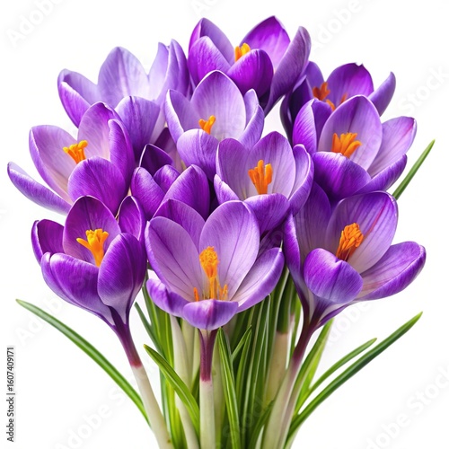 A beautiful bouquet of purple crocus flowers isolated on a white background