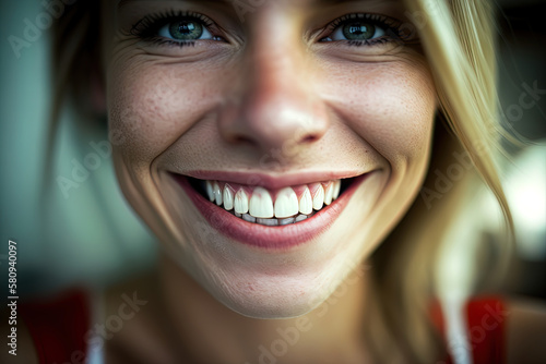 A beautiful close-up image of a cheerful smile and spotless teeth. AI-Generated