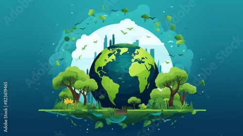 A beautiful digital painting of a lush green planet Earth