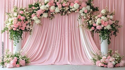 A Beautiful Floral Arrangement and Drapery Decor For a Wedding