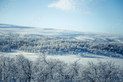 A beautiful forest landscape of a snowy Norwegian winter day