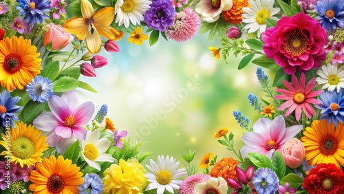 A beautiful frame of vibrant spring flowers perfect for any spring or floral themed project, spring, flowers, frame, border