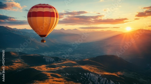 A beautiful hot air balloon ride over a scenic landscape at sunrise, with a colorful sky in the background, symbolizing the endless possibilities and inspiration of travel and adventure.