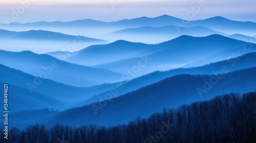 A beautiful landscape of mountains and fog in blue hues