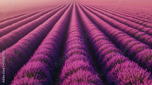 A beautiful lavender field stretches across the landscape, showcasing vibrant purple rows.