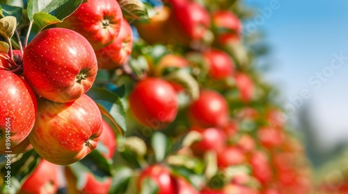 A beautiful orchard with apple trees laden with fruit and leaves turning golden
