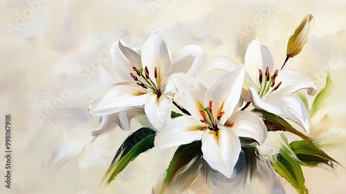 A beautiful painting of white lilies against a soft, blurred background.