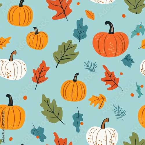 A beautiful pattern featuring pumpkins and leaves perfect for fall decor and design