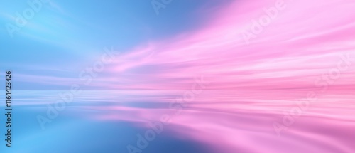 A beautiful pink and blue sky with a reflection of the sky on the water