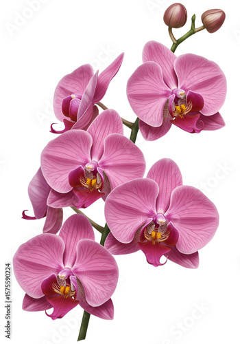 A beautiful pink orchid blossom is elegantly displayed against a dark background, creating a striking botanical composition.