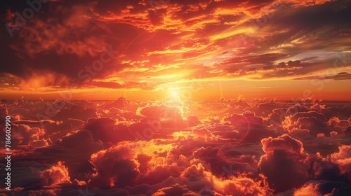 A beautiful sunset over fluffy clouds. Ideal for travel and nature concepts