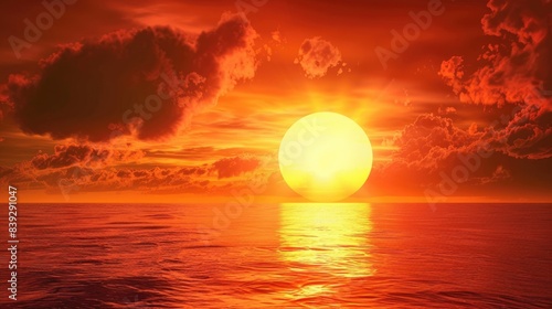 A beautiful sunset over the ocean. The sky is ablaze with color, and the water is calm and still. It is a perfect day to relax and enjoy the beauty of nature.
